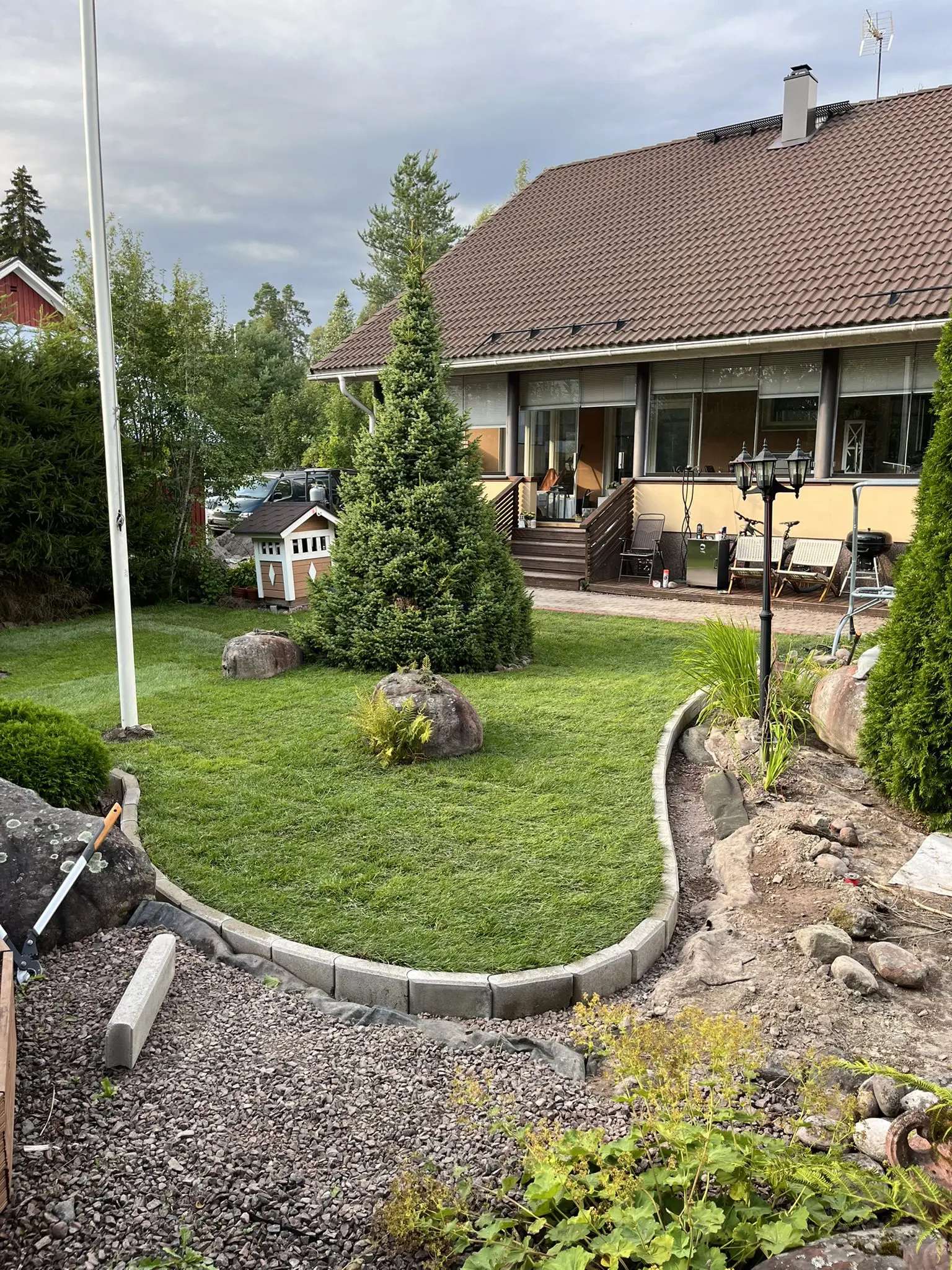 Viherrakennus luo perustan viihtyisälle ja toimivalle pihalle. Toteutamme erilaisia viherrakennustöitä aina terasseista istutuksiin ja nurmikon perustamisiin. Huolehdimme, että työt tehdään kestävällä tavalla ja laadukkailla materiaaleilla, jotta piha pysyy kauniina ja helppohoitoisena vuosiksi eteenpäin. Oli kyseessä pieni pihamuutos tai suurempi kokonaisuus, suunnittelemme ja toteutamme projektin ammattitaidolla.